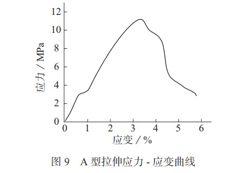 第一種 A 型拉伸應(yīng)力 – 應(yīng)變曲線。焊接壓力在 0.02 MPa 下的接頭試樣拉伸試驗結(jié)果如圖 9 所示。在低應(yīng)力且未發(fā)生明顯的塑性變形情況下,試樣在接頭焊縫處突然斷裂。