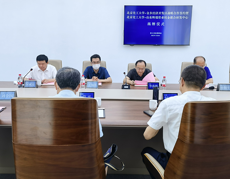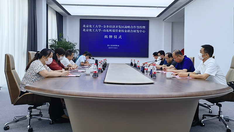 2022年7月25日上午,山東輝瑞管業(yè)聯(lián)合金鄉(xiāng)縣經(jīng)濟開發(fā)區(qū)成功舉辦《北京化工大學-金鄉(xiāng)經(jīng)濟開發(fā)區(qū)戰(zhàn)略合作簽約》暨《北京化工大學-山東輝瑞管業(yè)校企聯(lián)合研發(fā)中心》揭牌儀式。